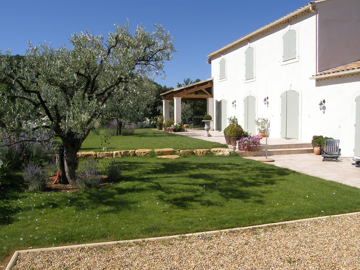pergolas, voiles d’ombrages, taille sculpturelle, pavage, jardin sec sans arrosage