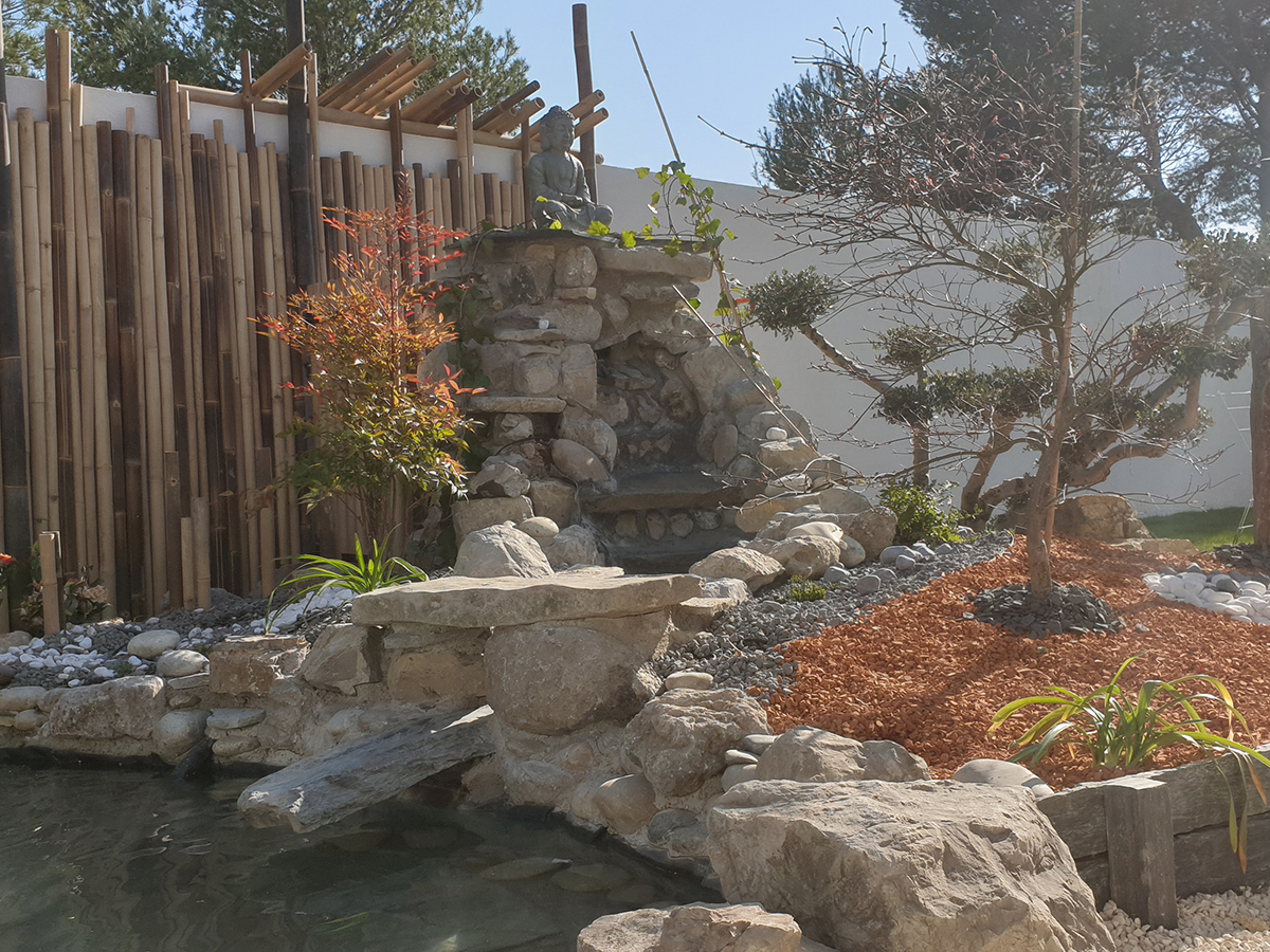 maçonnerie paysagère, piscines, terrasses, patios, terrassement et enrochements, treille,